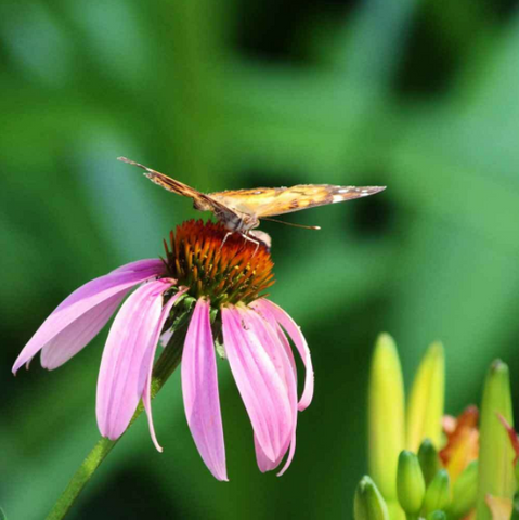 Growing: Water seedlings until they become established. Unlike most coneflowers, Purple Coneflower does not do well in drought conditions and needs adequate moisture. The area should be well-drained to avoid soggy soil, since this can cause disease. Keep competition to a minimum in the first year of growth, since this plant cannot reach its full potential when crowded by weeds. After several years of growth, mature plants can be divided in late fall. This plant attracts hummingbirds, butterflies and bees.
