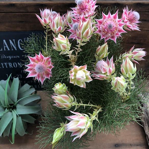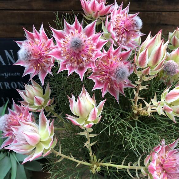 "Blushing Bride" is a variety of hydrangea known for its color-changing blooms and beautiful flowers. The blossoms start off in a fresh white hue when they first open and gradually transition to soft shades of pale pink or light blue over time. This color-changing characteristic gives the flowers a romantic feel, making them an ideal choice for wedding bouquets and garden adornments.