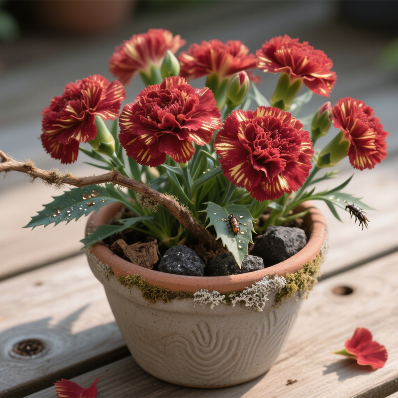 🌟 Unique Bloom Structure – Layered, finely ruffled petals resemble hand-twisted lace, unlike any typical carnation.