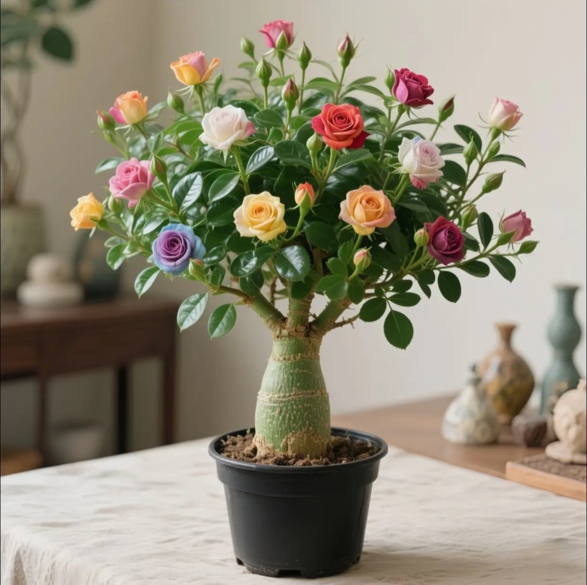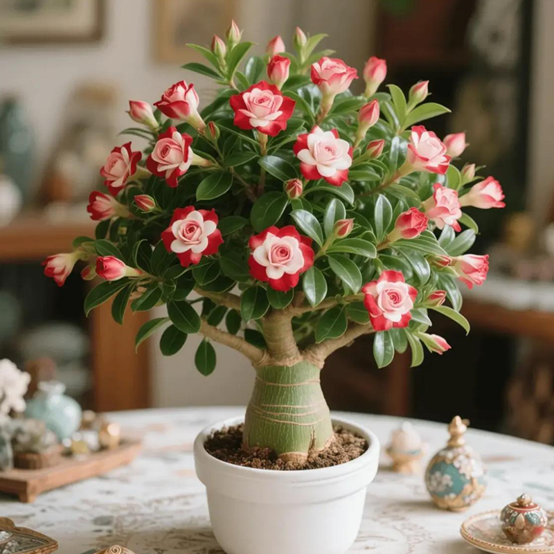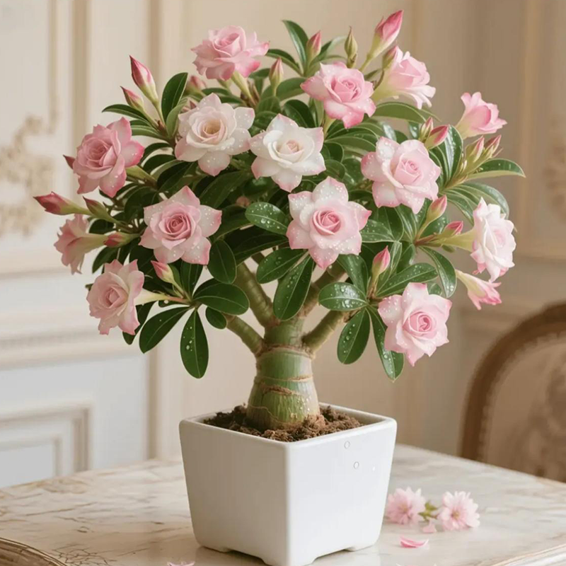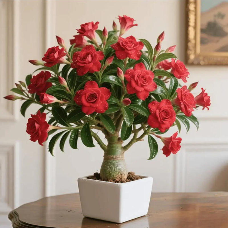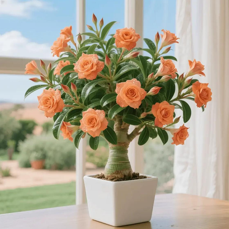 Desert Rose isn’t just a flower—it’s a living sculpture. Its fat trunk, glossy leaves, and bright flowers make it a conversation piece in any space. Whether grown indoors or outdoors, it brings bold elegance to modern and minimalist spaces alike.