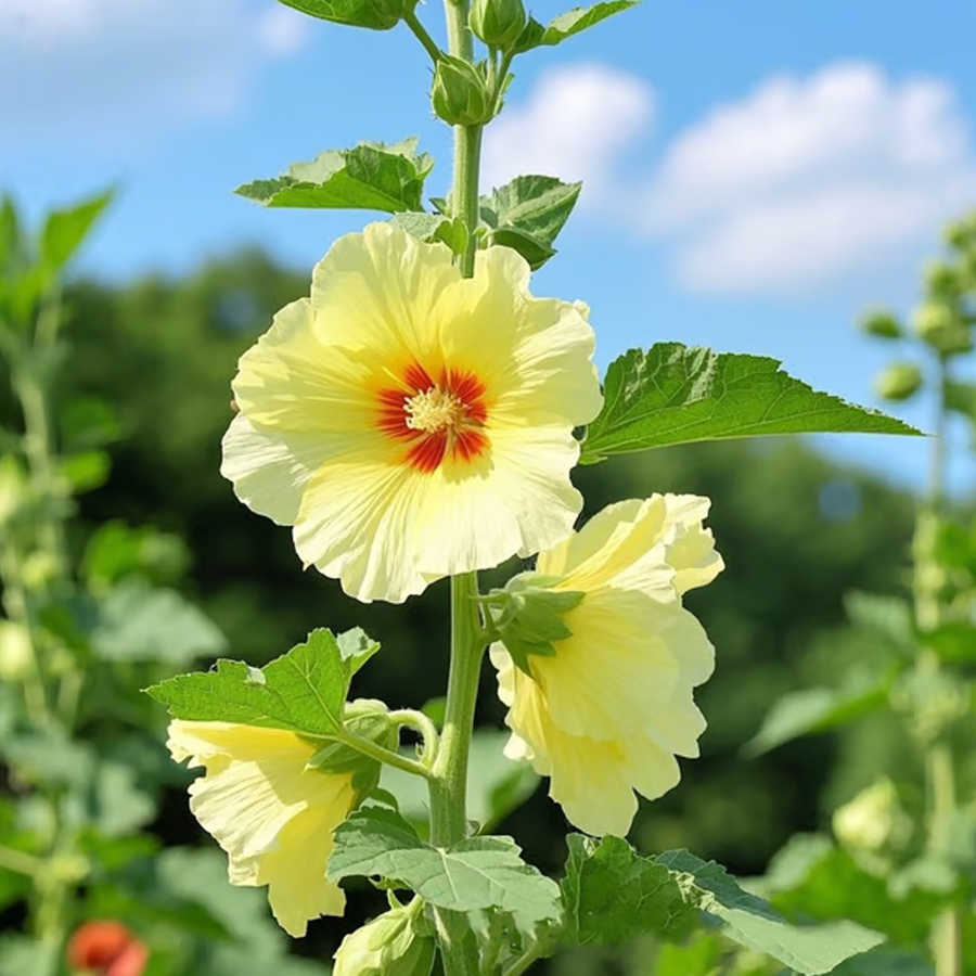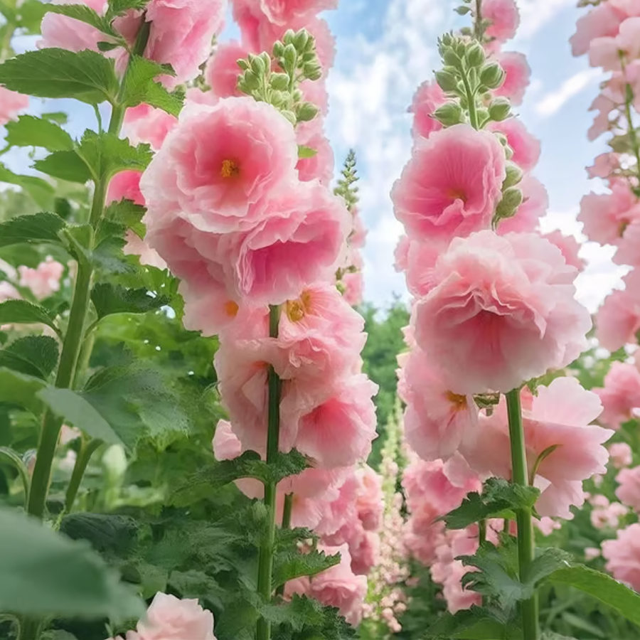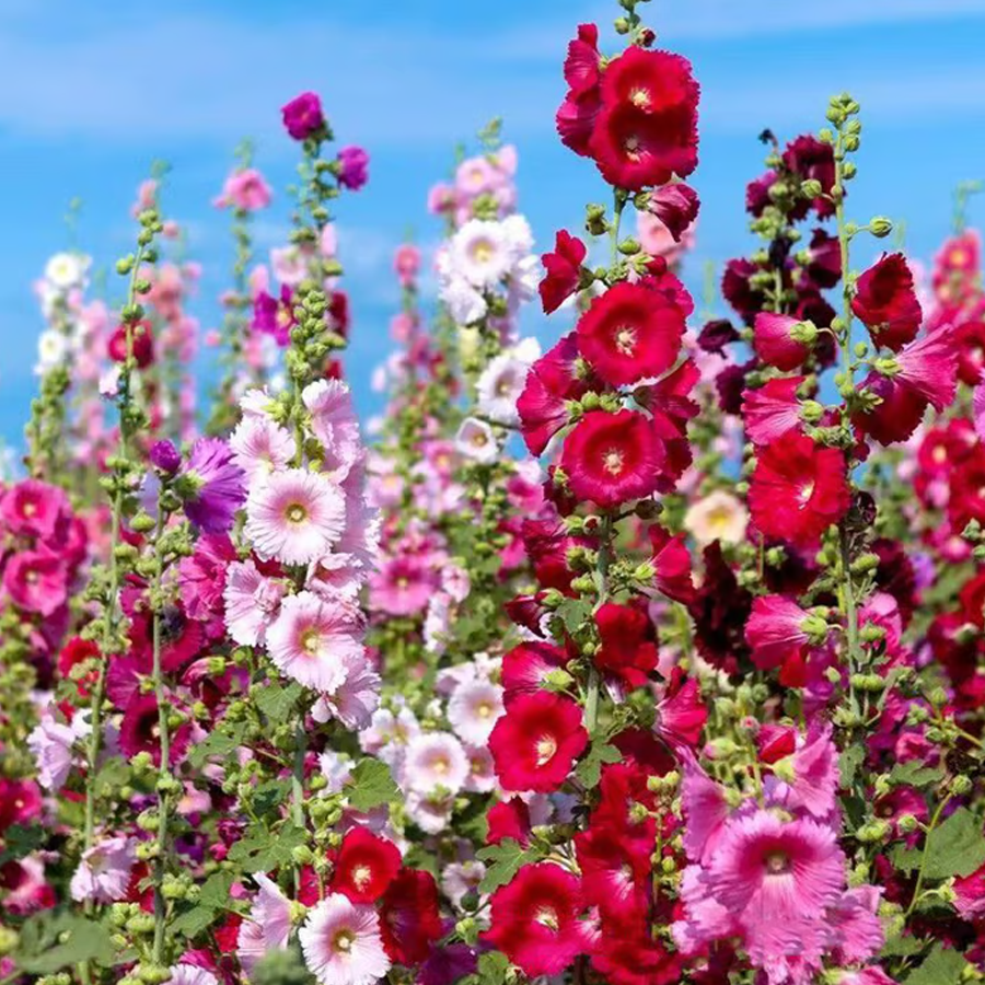 Our hollyhock seeds will bring a beautiful sea of flowers to your lawn or container garden 🌸