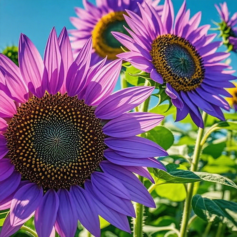 Not your typical sunflower – this rare variety bursts into vibrant gradients of red, orange, pink, purple, and gold. Each bloom is one-of-a-kind, like nature’s own painting.