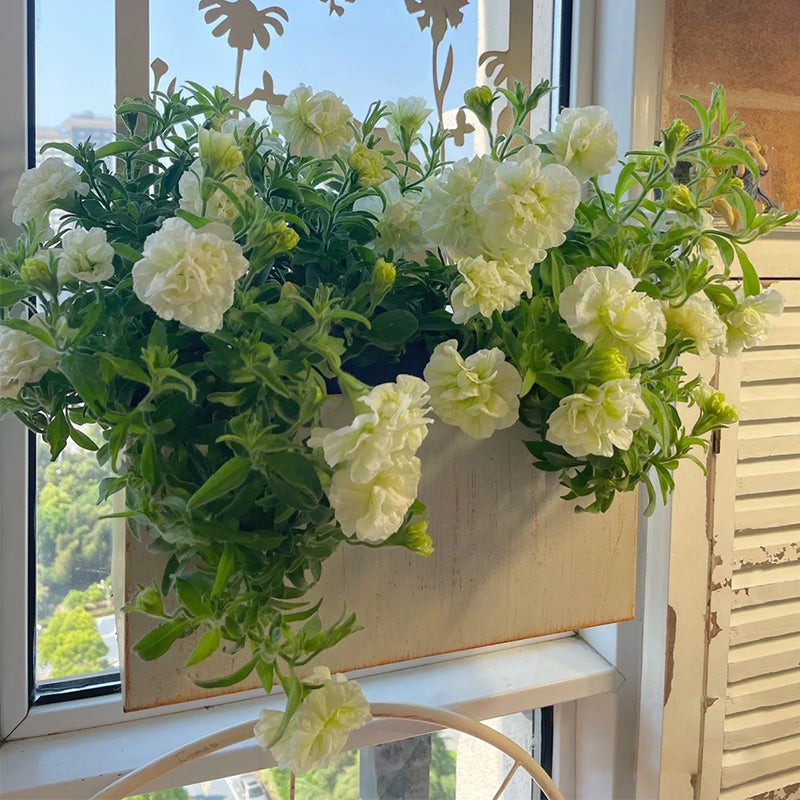 Beautiful tender flowering plant with creeping shoots grows 50-70 cm (20-30 in.) long. Funnel-shaped and frilly, snow-white flowers, diameter 7-9 cm (3-3.5 in.) which covers the plant completely during the flowering. Blooms from June to late autumn. Use for balconies, garden vases, hanging pots, and balcony containers.